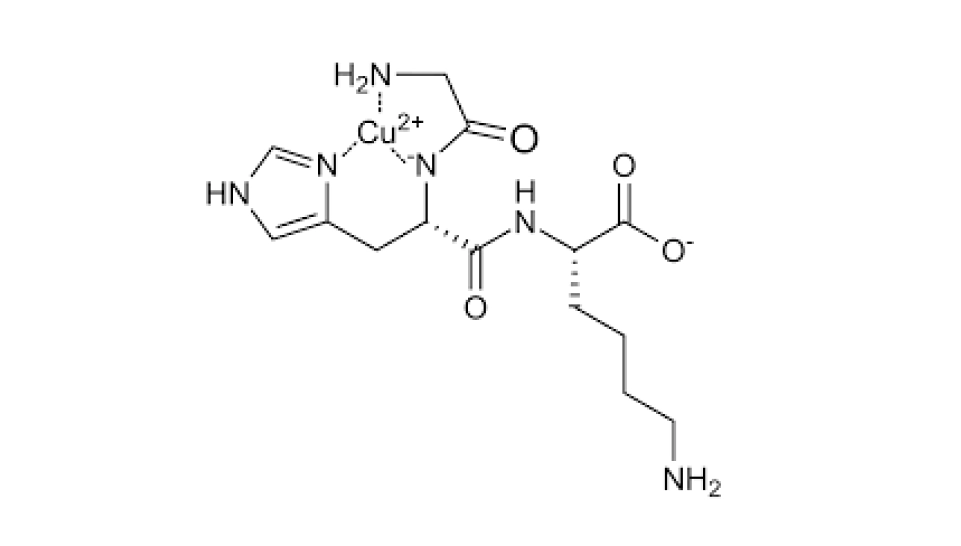 GHK-Cu is a naturally occurring copper-binding tripeptide composed of glycine, histidine, and lysine complexed with copper ions.