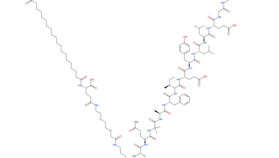 Retatrutide is a long-chain synthetic peptide analog with a stabilized multi-agonist structure.