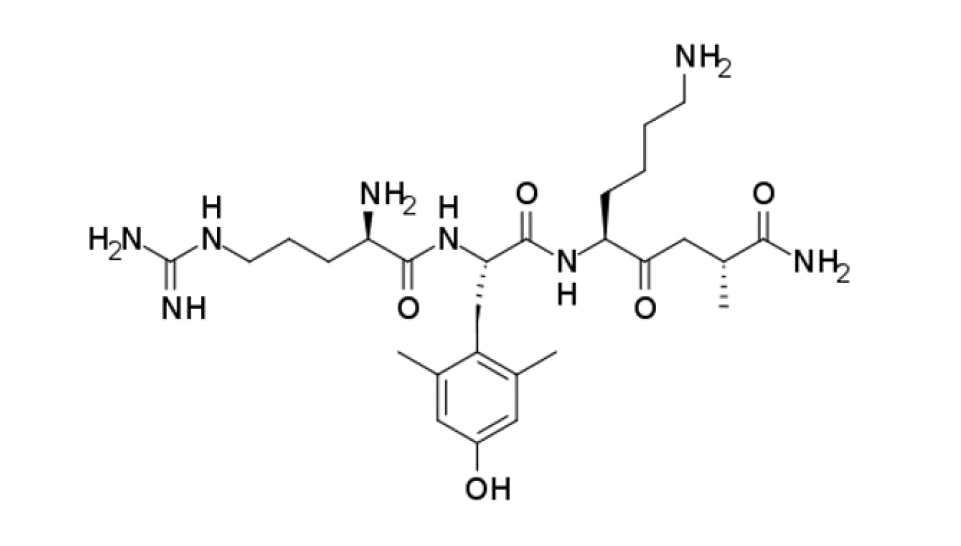 Sequence: D-Arg-Dmt-Lys-Phe-NH₂ (Dmt = 2′,6′-dimethyltyrosine)
